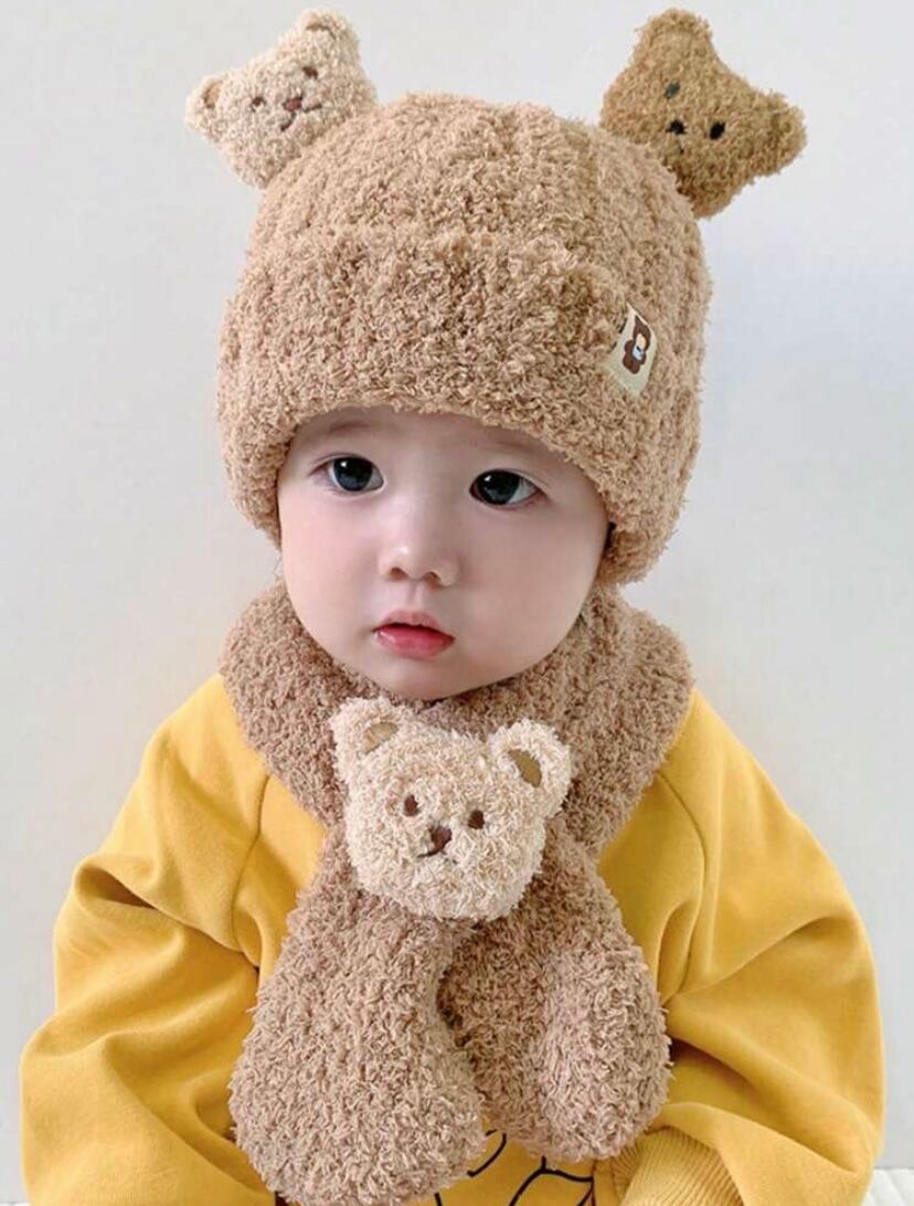 くまさんニット帽&マフラーセット