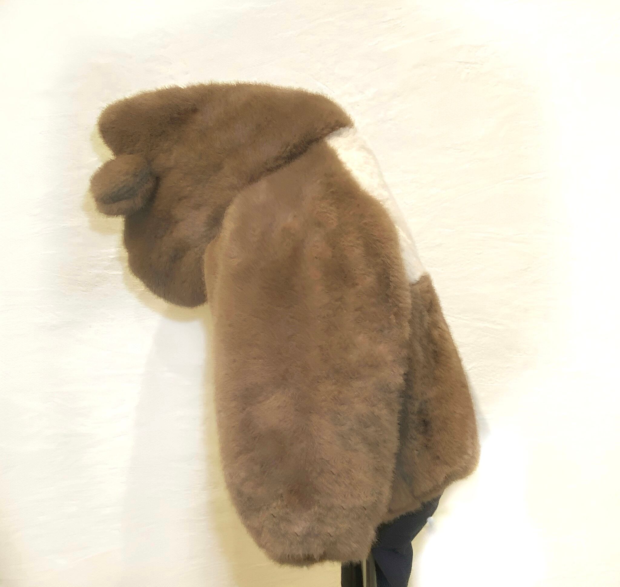 このブルゾンは、フェイクファーのふわふわの素材でできていて、くまさんのデザインがまるで本物のようで、周りの人たちからも注目されること間違いなし!