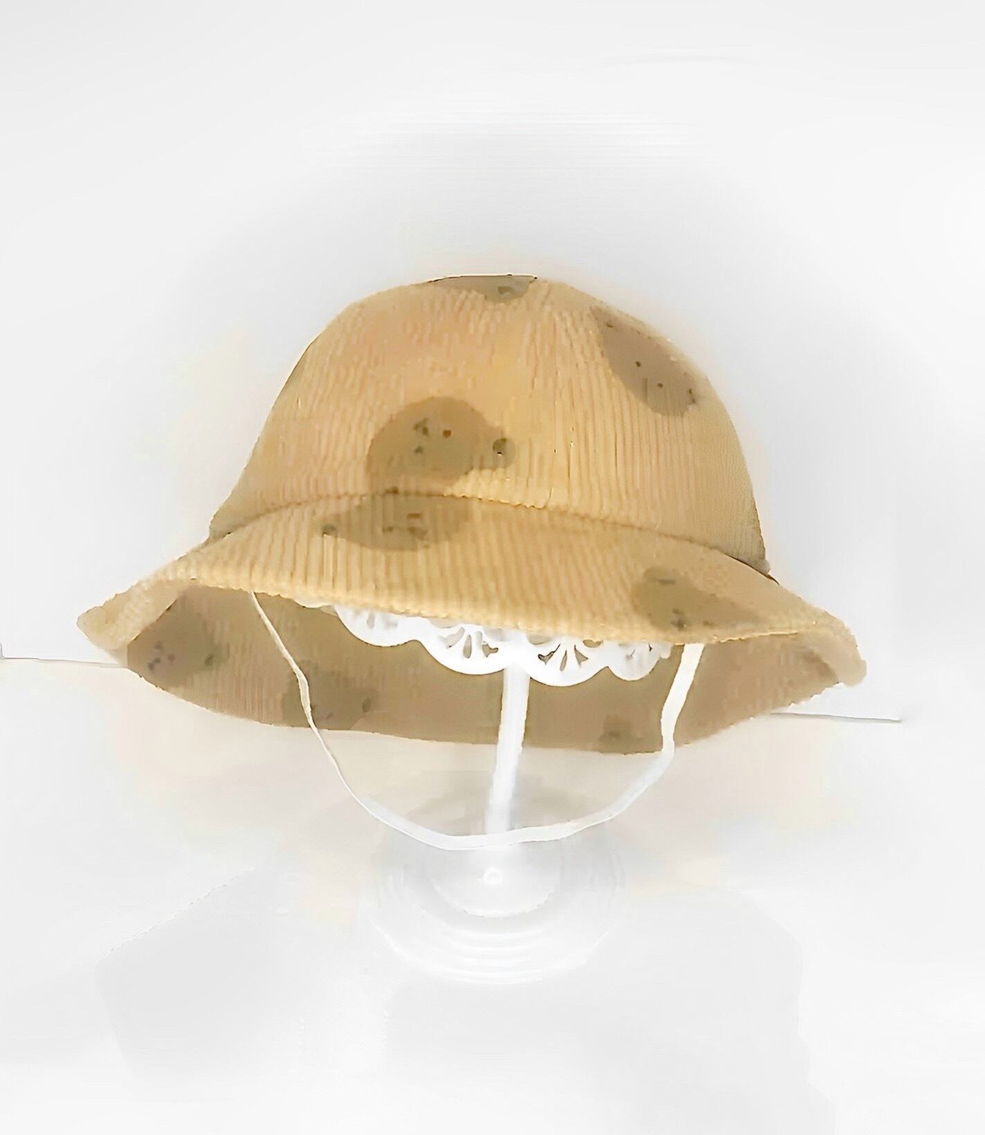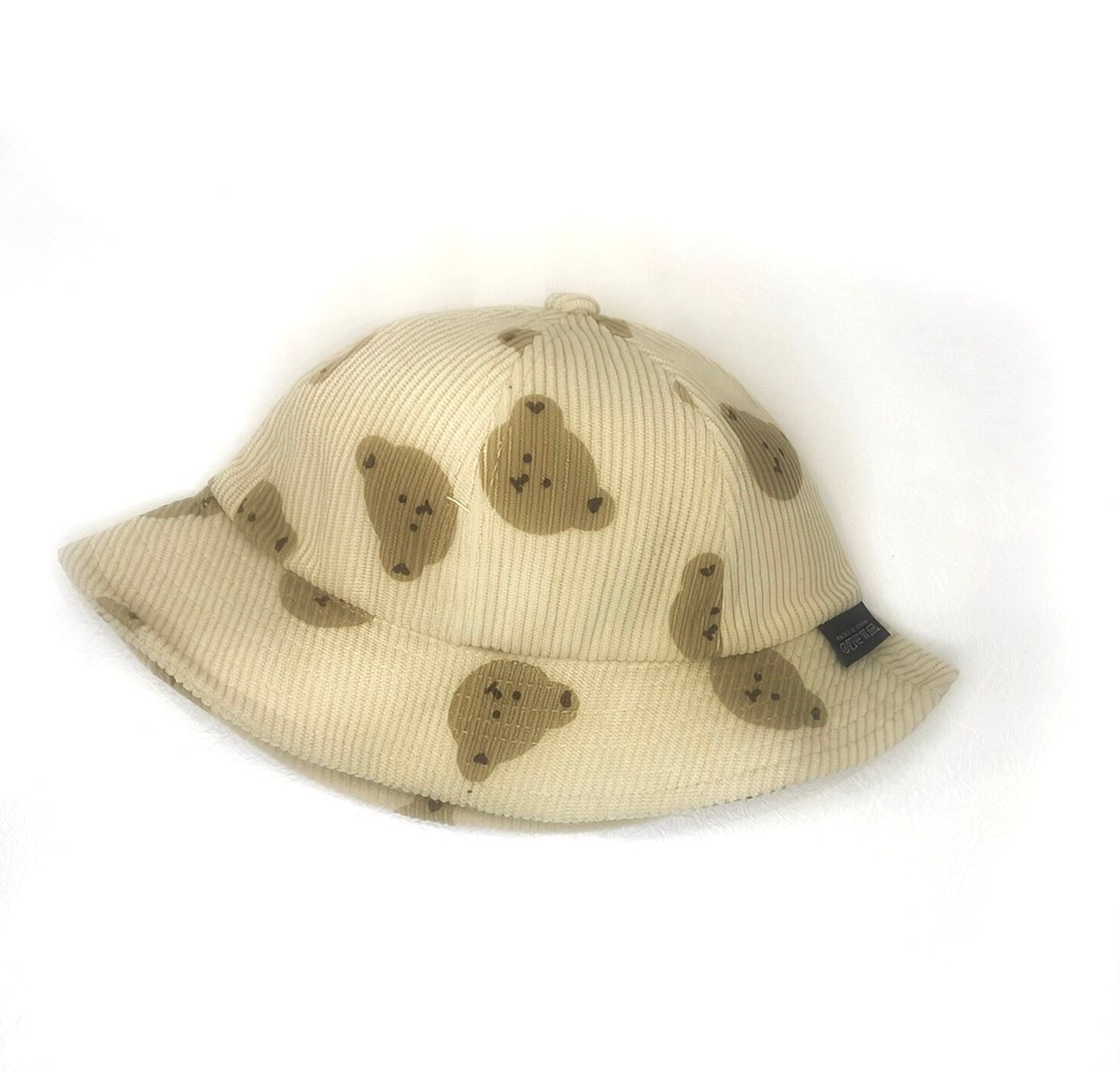 登場いたしました!くまさんコーデュロイハットです。 柔らかくて暖かいコーデュロイ地のハットに、キュートなくまさん柄が施されています。 カラーがナチュラルなのでどんな服にも合わせやすいです。